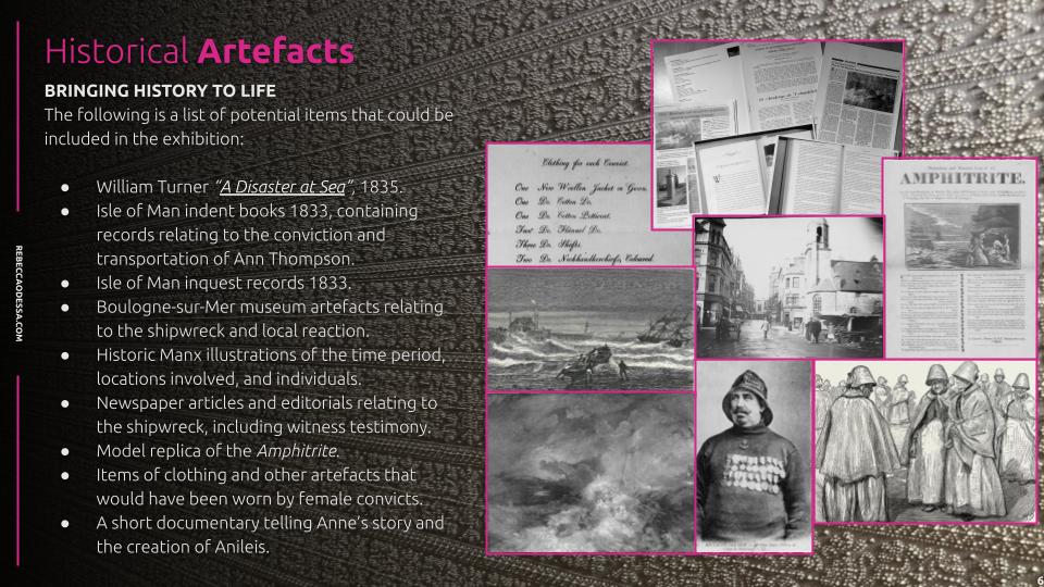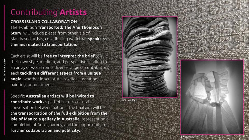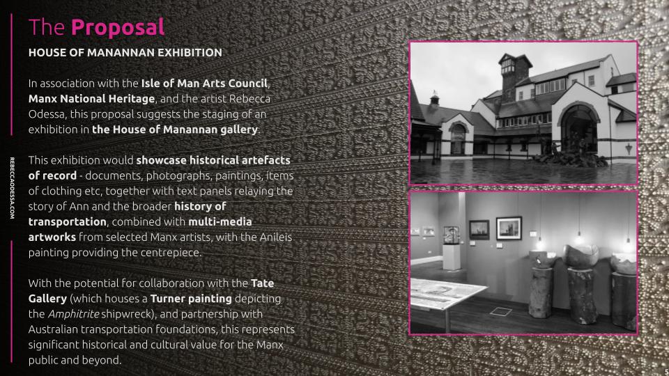 On Tuesday 21st May, I have a meeting with the Isle of Man Arts Council to pitch them the idea of having an exhibition that tells Ann Thompson’s story. Below is the pitch deck for the meeting.