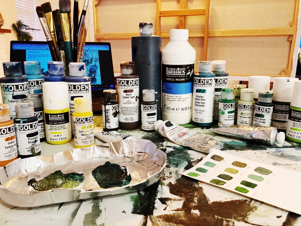 One thing is certain, if I am going to paint with green, I have to get it right, or I will end up with a garish mess that no one will want to look at. To avoid this pitfall, I have set myself the task of creating a suitable palette, so I’ll have a better chance of getting it right when it comes to the final work/s.