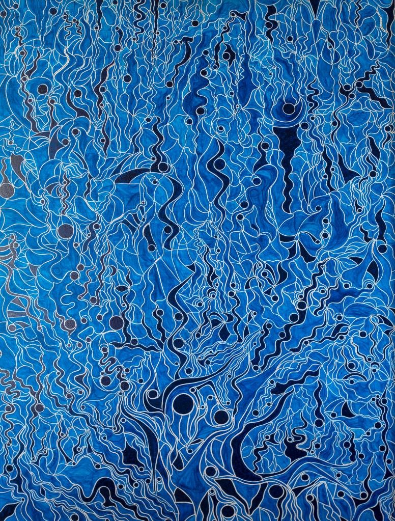 Some artists like silence when they paint, others like music. Personally, I like watching documentaries (technically I like listening to them, though I do pop my head up now and then to see what’s going on). My absolute favourite are pre-history ones, especially if they deal with religious practices and/or death-related rituals. I also like documentaries about water, hence why I chose water as the subject for my overall MFA project. As with pre-history, I especially like the religious aspect of water, such as its role in creation stories and its use as a conduit of transformation and spiritual cleansing. These two roles of water are almost universal, which is something I find fascinating. I especially love Celtic beliefs surrounding sacred bodies of water – that they are portals to the underworld, repositories for sacred objects, sources of healing, and, as with rivers, the embodiment of deities.