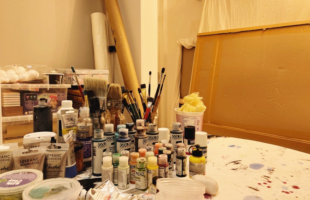 Last week I decided to declutter the studio. Wow, what a difference it makes. I love being in here even more now, and find it much more conducive to arting. Of course, unless you’re a de-clutterer of the ruthless variety, the clutter has to go somewhere. Mine has gone into the room that my fella was going to use as an office. However, the non-fibre broadband we have out here in the woop woops isn’t good enough for his job, so he still works in his flat in Ramsey. With the empty space too tempting not to fill, it is now home to canvases and paints and things. According to my fella, I have now peed in every corner of the house, and if we ever do get fibre out here, he’ll need to water-proof the shed.