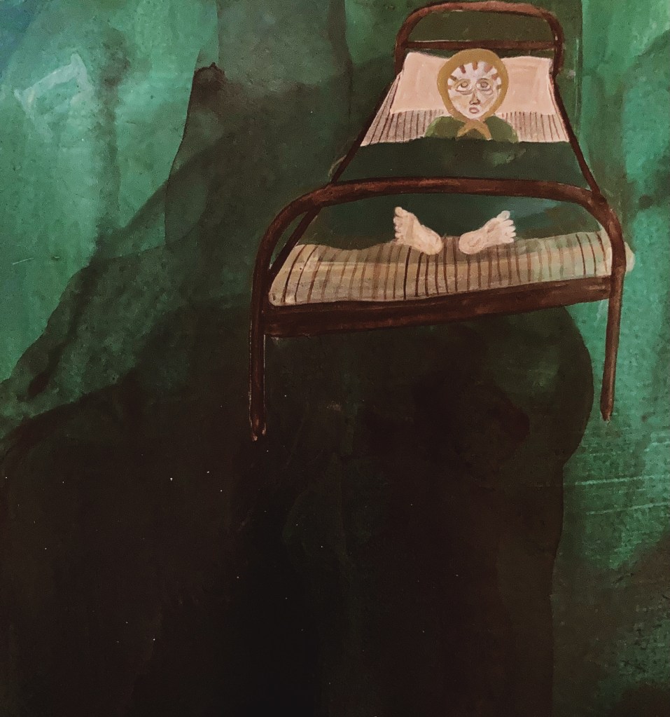 Coincidently (or perhaps not), the painting I had in mind for the Interim Show featured a dead lady in a bed. Although I wasn’t able bring the whole concept of the painting to fruition in time (of which the dead-lady-in-a-bed was just one element), it certainly wasn’t for want of trying.