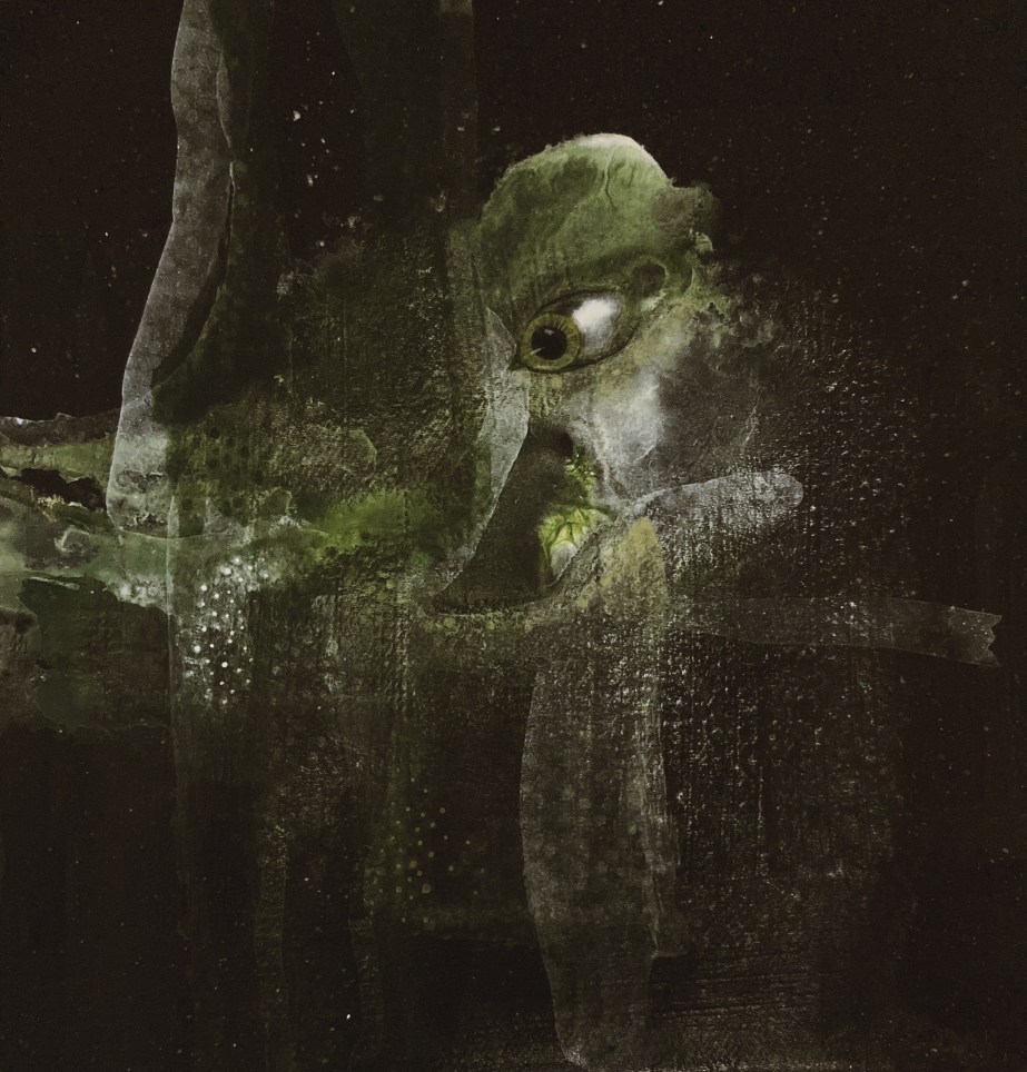 I am particularly interested in this second insight at the moment, due to my recent colour change from blue to green. Blue has always felt like a safe, knowable colour to me, which is why I typically used it when experimenting. But green – it is completely different. I don’t yet know its boundaries, or what its emotional resonance will be on a large scale. On a small scale, it feels mysterious and other-worldly, if not a little bit spooky. When I paint with its darker tones (as above), I am reminded of a time when I was a child, in a boat on the edge of a lake. I remember looking deeply into the water which rippled and swirled with tones of impossibly dark green that merged into unknowable inky darkness. I was completely captivated. Even though I was only a small child, probably no more than 5 or 6, I knew I would never forget what I was seeing, and so I never have.