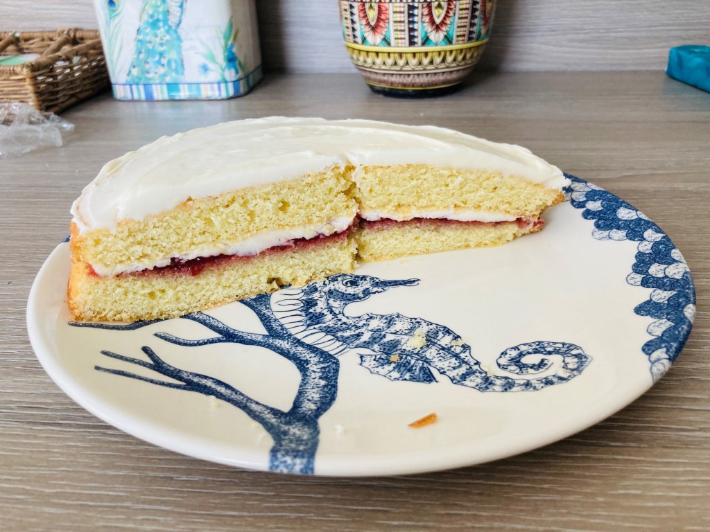 My fella is in Rotterdam for work this week and I miss him terribly, not just for his cake baking abilities. Though, it would be reason enough, as I had a go at a Victoria sponge and I don’t know what kind of WI witchery he used in his, but mine came out flat as a pancake. Still, the jam and icing has made it edible.