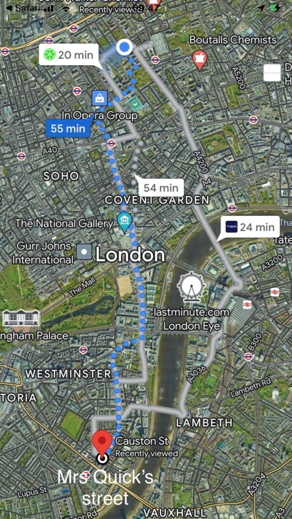 Anyway, I decided to walk to Westminster to see what I could find. To be honest, I didn’t find much save the street where she had lived and sadly died (the house long demolished and replaced), and the local pub she may well have frequented, and which I did (alone, in a corner, slathered in anti-bac). Post ghost-hunting, I made the mistake of catching a tube back to my hotel, which re-triggered my allergy, making my symptoms worse than ever, and leaving me utterly miserable for the rest of the day.