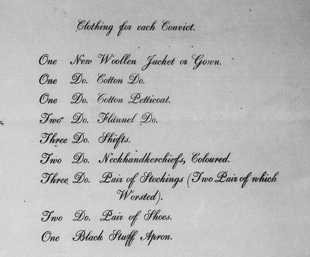 I would like to make a textile piece for my Ann project, to be shown with the painting. The idea I am toying with is something related to the clothes the transportation system officials required be sent with each prisoner, the list of which I found in Ann’s court records.