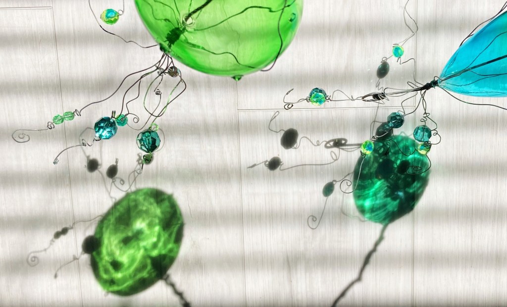 I had a couple of workshops this week. One was about socially engaged art, with David McGovern, which I found really informative and interesting. The other was one our whole class did together, called “Emerging dialogues through textile and visual arrangements” with Sukie Sagoo-Reddy. It was actually a workshop I had done last term, even so, it was enjoyable and inspiring to do again, especially with all my classmates. My favourite task was called “chasing shadows”, where we were asked to create a piece of work that involved shadows. I decided to arrange and photograph the shadows cast by these beautiful glass ornaments made by a lovely friend of mine. I love how glass effectively casts coloured shadows.
