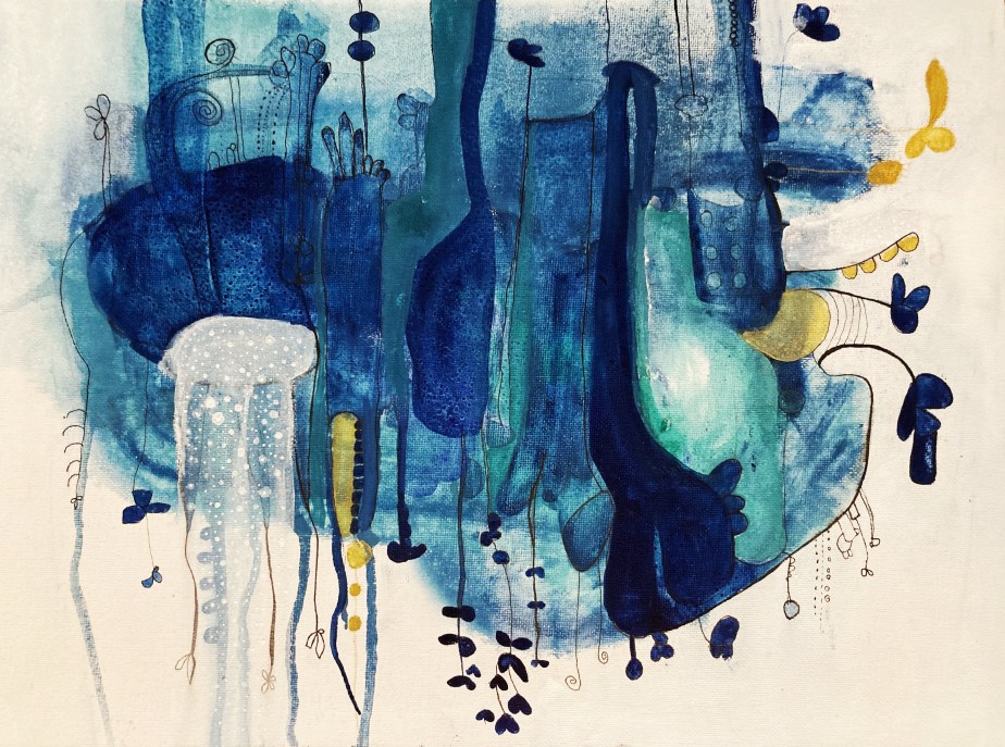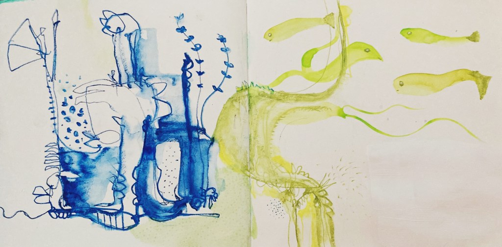 I’ve decided I shall align my submission for the show with my aims and objectives for my overall project about water, chief of which is to include figuration (people/creatures) in my work, and also to size-up (i.e. make bigger paintings). Whether I am able to achieve both or either in time for the show, remains to be seen. However, I intend to give it my best shot. To which end, this week I have been working on eyes.
