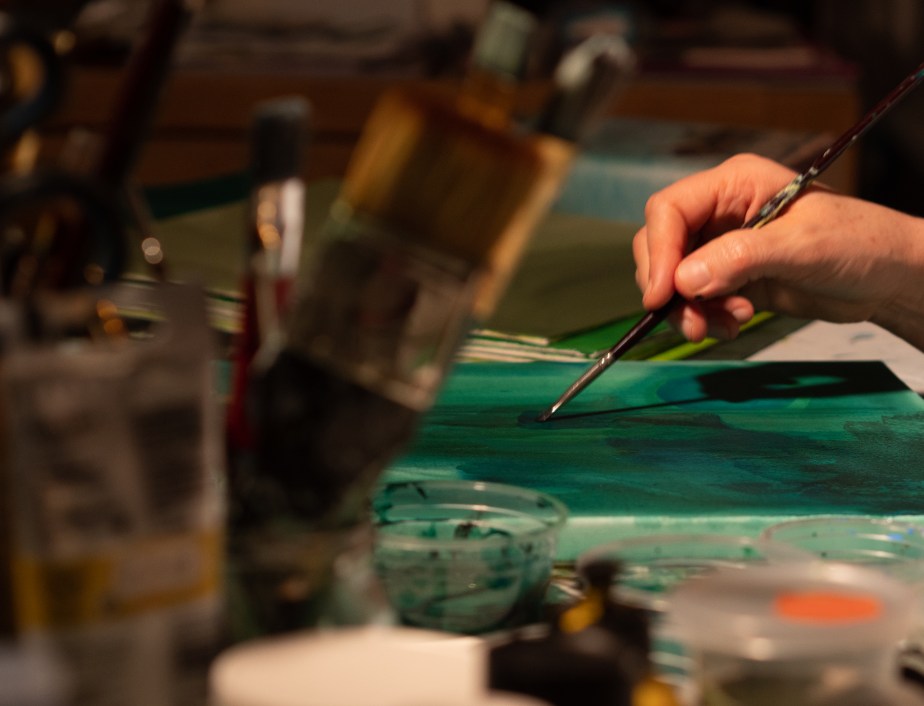 During week six, I decided to start experimenting with a green-based palette, and absolutely loved the change (previously I was using a blue-based palette). I decided that green is better suited to the paintings I had in mind for the research project, that is, some type of underwater paintings.
