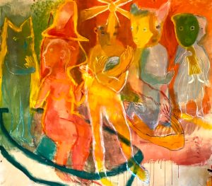 Initially, I will paint small works on paper, to decide the composition and figurative elements I want a given painting to have. I will then gradually size-up the work using progressively larger canvases. Once I become more adept at painting on larger canvases, I hope to be able to forgo the gradual sizing-up process, and go from a small composition/figurative sketch straight to a large canvas.