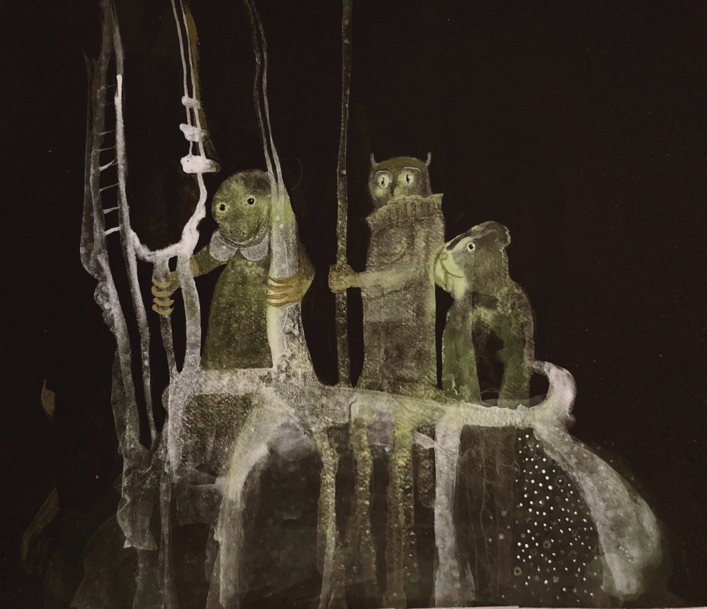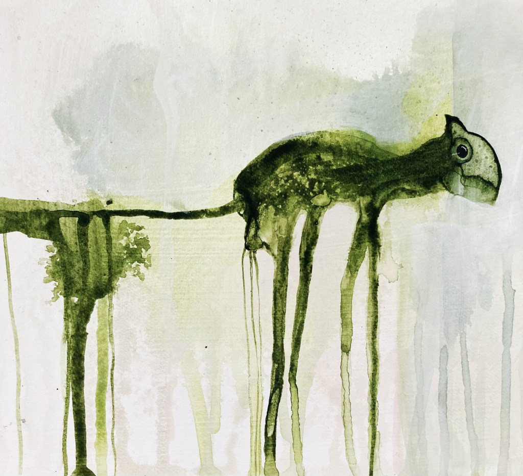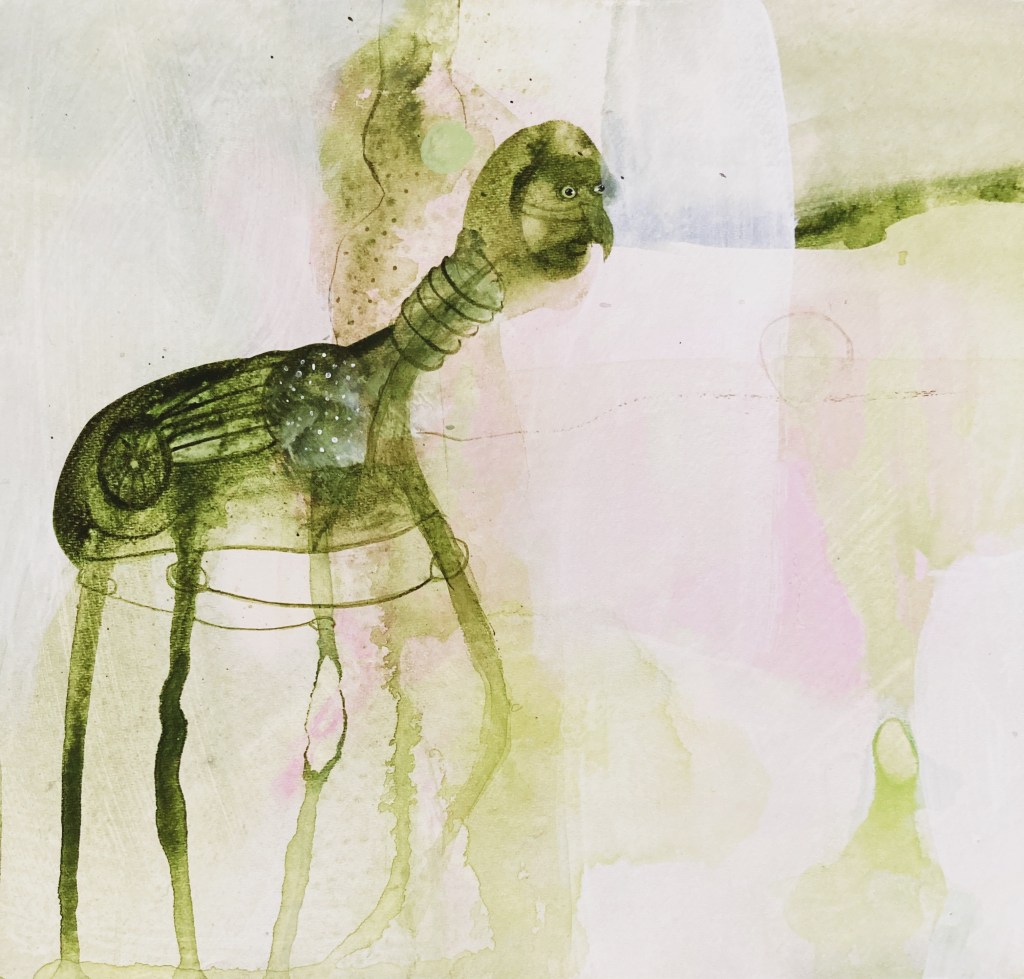 No.42 – I started using a new technique – applying random marks on the paper, then spraying water on them, and letting the images emerge organically out of the marks, then painting into them. I love the results.