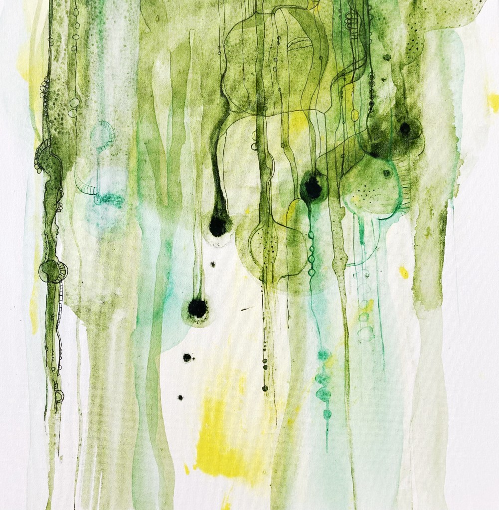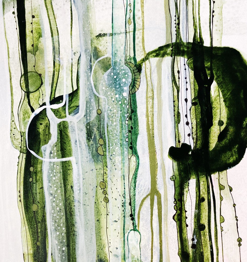 No.62-63 – back to the green/figurative paintings, which is a pleasure after having a wee break from them. Just trying different things. I’ve added phthalo green (blue shade) to these, and really like the results. The y also have sea-underpaintings, which makes them more dynamic. I came to the realisation this week, that if I want to paint bigger I have to draw bigger. So, for the paintings, I’m going to try painting particular aspects on a larger scale (such as the eye above). I am delighted with the amount of detail you can add when you paint bigger.